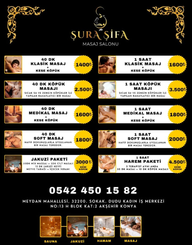 Günlük koşturmacadan biraz uzaklaşıp kendinize özel bir an ayırmak ister misiniz? 🌸 Burada, uzman ellerin dokunuşuyla bedeniniz ve ruhunuz tazelenecek, tüm yorgunluğunuz uçup gidecek. Sıcak ve huzurlu ortamımızda, size özel masajlarla rahatlamanın keyfini çıkarın. Kendinizi şımartmak için doğru yerdesiniz! ✨